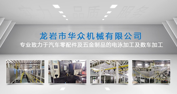 龍巖市華眾機械有限公司網站上線啦!??! 龍巖市華眾機械有限公司前身為龍巖市杰瑞特工貿有限公司,成立于2010年12月。新廠座落于福建省龍巖市新羅區東寶工業集中區,注冊資本500萬元,占地面積約27,000平方米,員工60多人 。公司擁有涂裝行業10年以上工作經驗的技術團隊。2018年8月經NSF-ISR評估獲得IATF16949質量管理體系認證通過并取得證書。 現專業致力于汽車零配件及五金制品的電泳加工及數車加工。